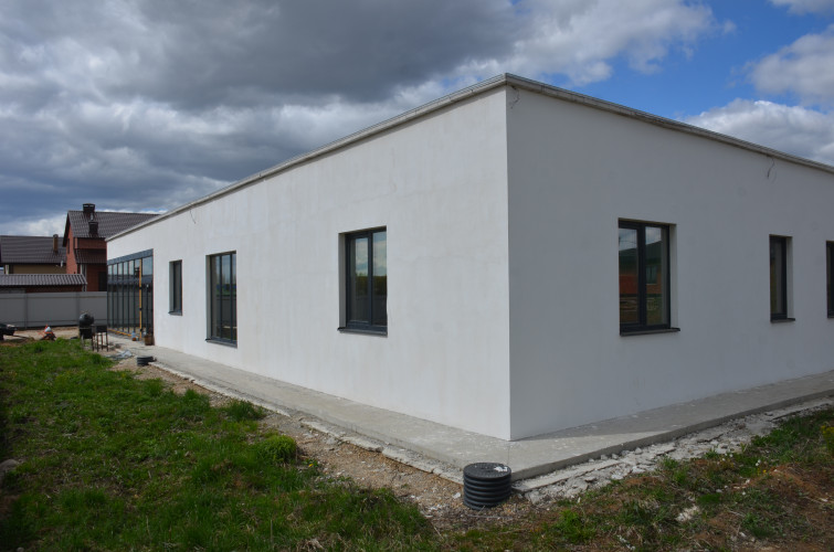 ОБЩАЯ ПЛОЩАДЬ 220 кв.м., материал стен -газобетон, фасад-"мокрый фасад", кровля: плоская, мембрана